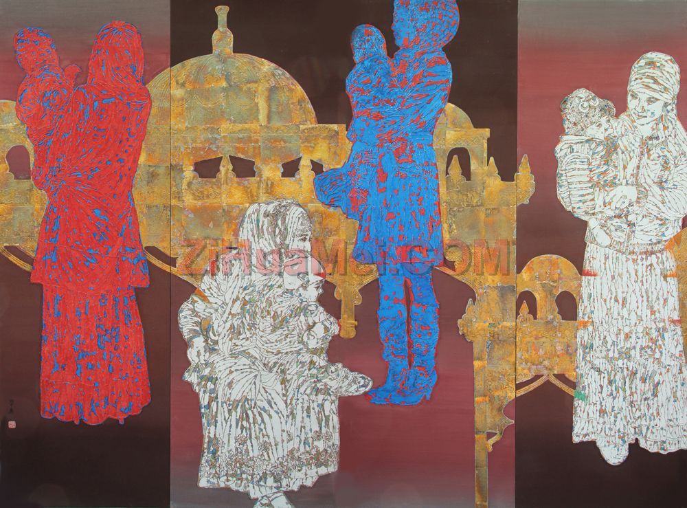 张学英 大型壁画,240cmX180cm ,工笔重彩画,皮纸、蛤粉、矿物颜料。十二届美展入选作品(有证书)