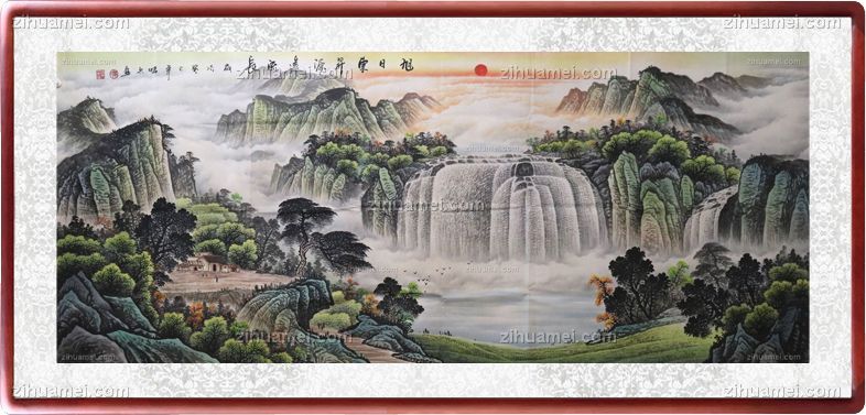 首页 --> 艺术商城 --> 国画山水画 --> 写意山水画 --> 字画美官方旗舰店 --> 山水画 手工 国画 旭日东升源远长流 典雅红褐实木框