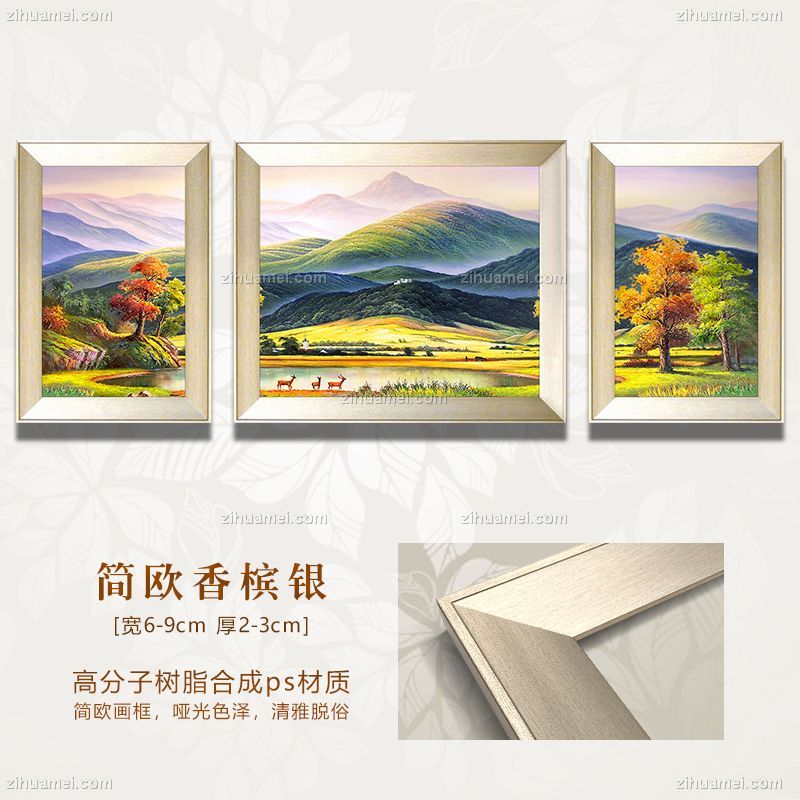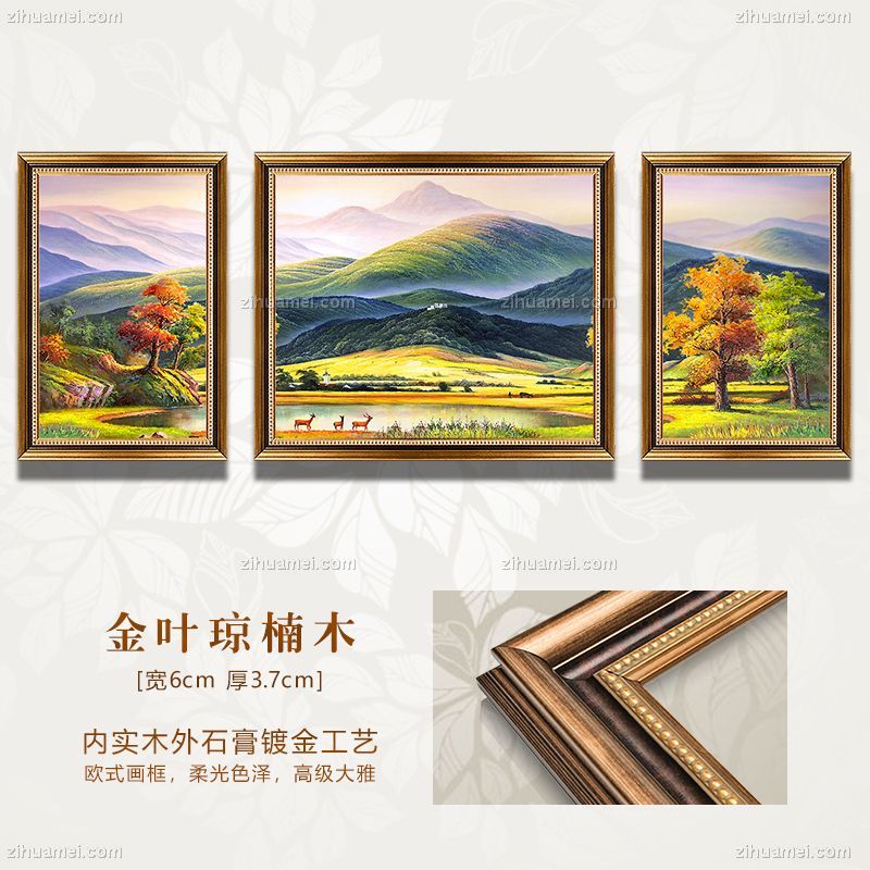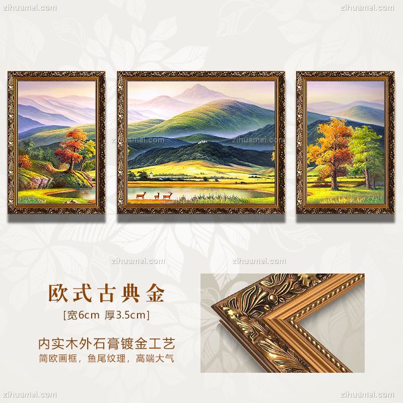 • 美式沙发背景墙装饰画欧式客厅玄关风景油画三联挂画新款巨人山